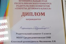 Родительский комитет 5 класса нашей школы принял участие в республиканском конкурсе "Секреты дружного класса" на муниципальном этапе.