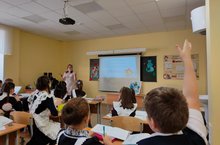 Учитель начальных классов Козлова Р. М. провела для воспитанников детского сада "Пчёлка" занятие "Профессия учитель". Ребята отгадывали загадки, рассуждали о тм, что такое хороший и плохой ученик.Пробовали себя в роли ученика.