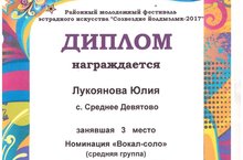 Поздравляем Лукоянову Юлию с победой в районном фестивале "Музыка родного языка". Молодец, успехов тебе в будущем!