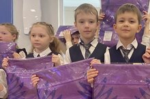 Каждый участник получил памятные подарки: значки и мешки для обуви.