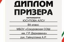 Орлова Анна, ученица 8а класса МБОУ "Сокуровская СОШ им. Г.Р. Державина" стала призёром заключительного этапа Республиканской олимпиады школьников по экологии. Научный руководитель Прокопенко Анастасия Валерьевна