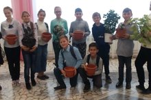 В школе проходит акция "Зеленая школа". Ребята озеленяют классы и фойе школы.