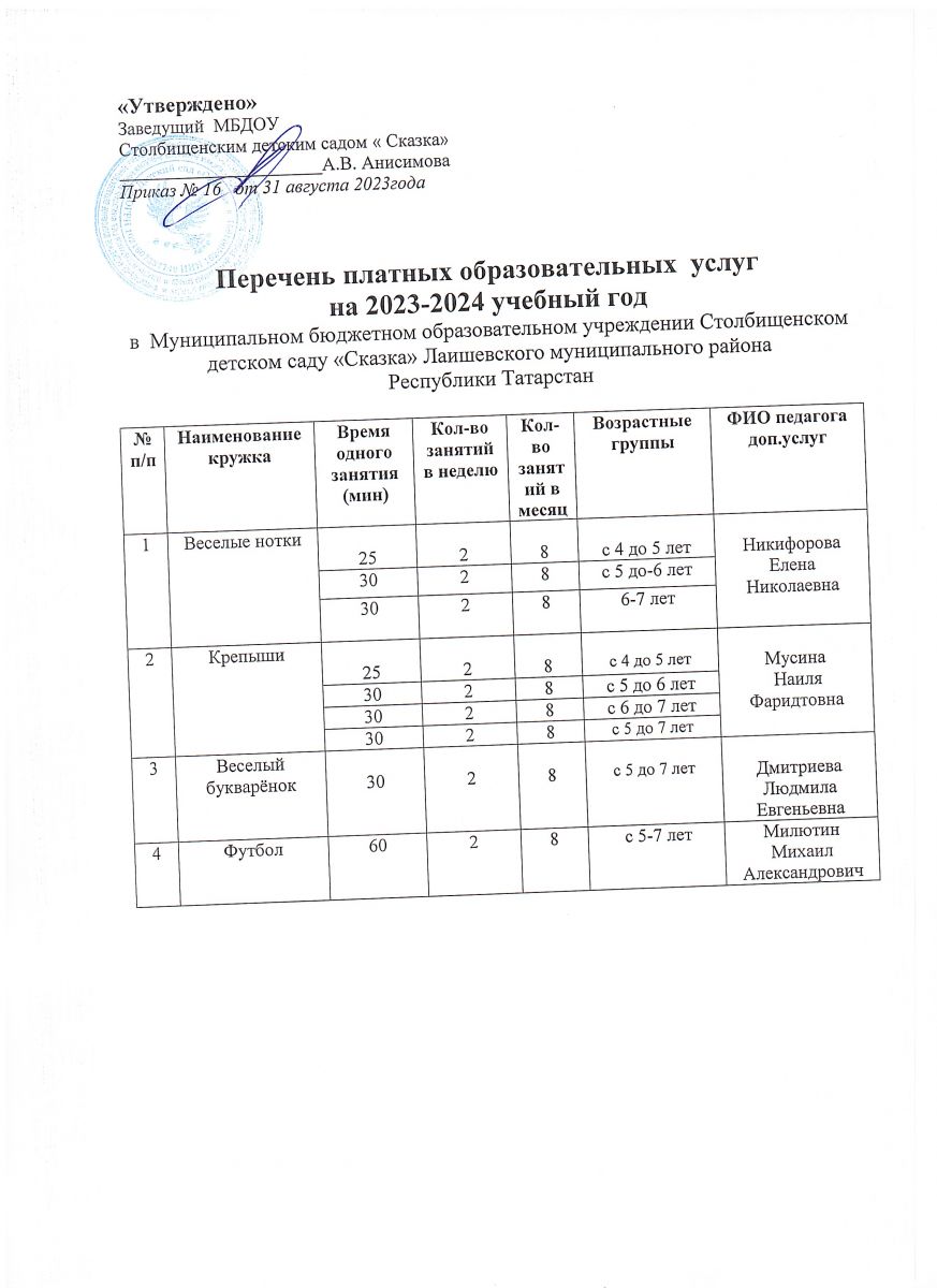 Перечень дополнительных образовательных услуг 2023-2024 учебный год