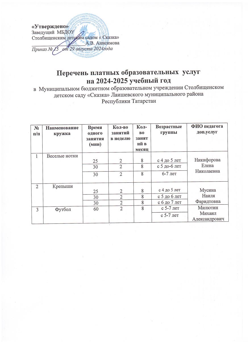 Перечень платных образовательных услуг на 2024-2025 учебный год