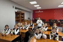 Утро понедельника в школе традиционно началось с торжественной линейки, выхода знаменной группы,церемонии поднятия флага???????? и исполнения гимна Российской Федерации и Республики Татарстан, в которой приняли участие ученики 1-х классов.