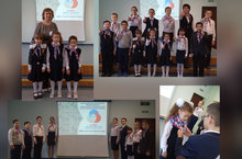 Сегодня день рождение РДШ. В этот день мы приняли учениц первого класса в РДШ и спели гимн.