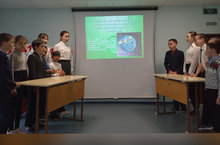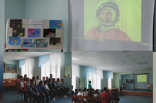 Учащиеся и учителя посмотрели фильм о первом полете Гагарина в Космос.