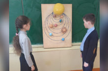 Ученики 4 класса со своим классным руководителем сделали Солнечную систему.