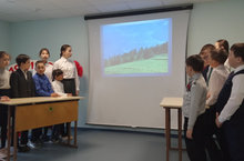 Специалистами социального обслуживания населения "Золотая осень" школьникам была показана презентация о В.И.Ленине. В ходе занятия ученики вспомнили биографию и исторический путь В.И.Ленина.