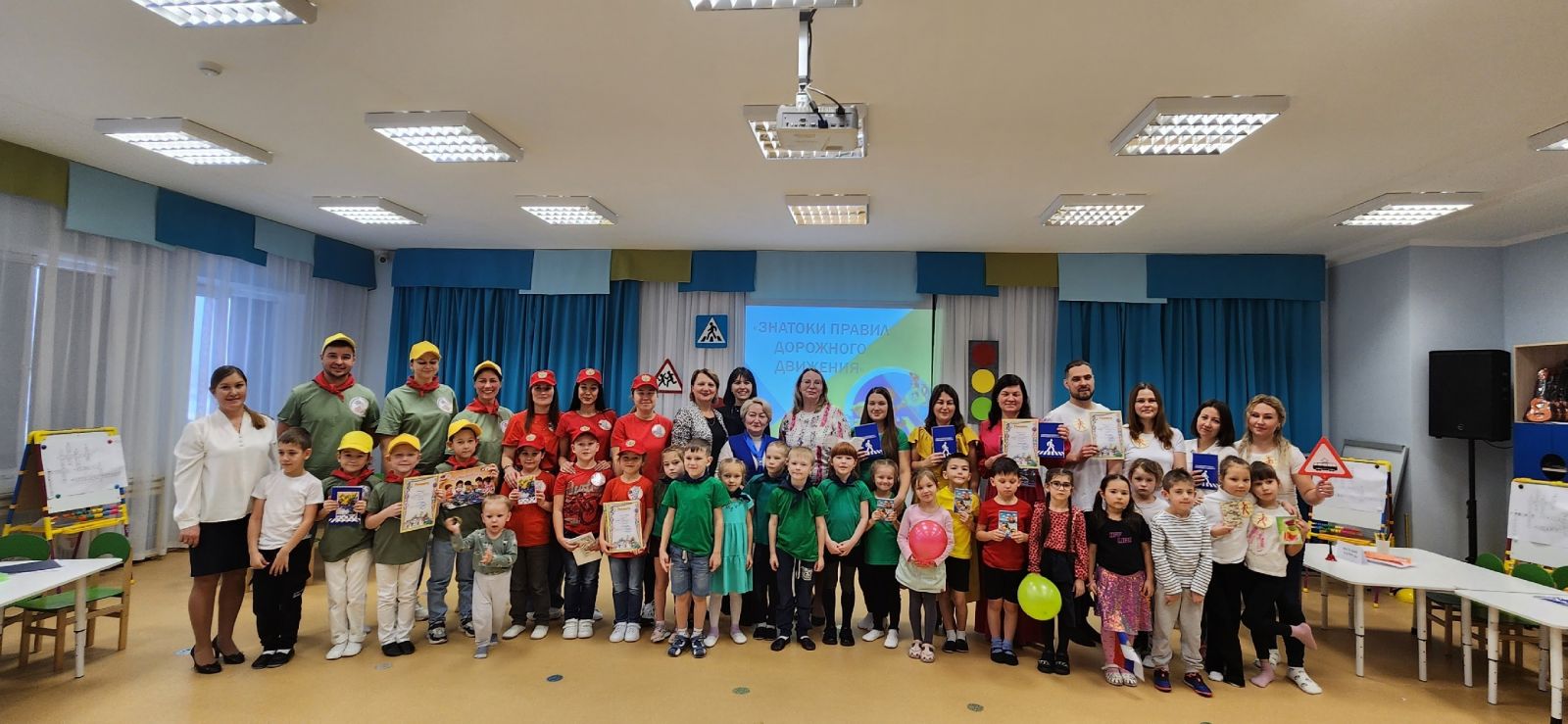 Обучение детей правильному поведению на дорогах необходимо начинать с раннего возраста. Задача педагогов и родителей – воспитать из сегодняшних дошкольников грамотных и дисциплинированных участников дорожного движения. В нашем детском саду прошла детско-родительская встреча по правилам дорожного движения «Знатоки ПДД», где принимали участие 4 команды: "Зебра" (группа "Фантазеры"), "Пешеход" (группа "Кубэлэк"), "Веселый патруль" (группа "Почемучки"), "Дорожный патруль" (группа "Неваляшки"), с участием главного специалиста Казанского филиала ГБУ «Безопасность дорожного движения» Зайнуллина Гульшат Айратовной, директором МБОУ "Усадская прогимназия" Лаишевского муниципального района РТ Евсеевой Анной Юрьевной. В ходе игры родители и дети выполняли непростые задания и справлялись с ними на отлично.