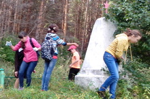 Учащиеся 8г класса совместно с классным руководителем Шайхутдиновой Р.Р. провели очистку памятника на горе Пузанка .