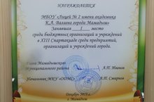 Коллектив МБОУ "Лицей №2 имени академика К.А. Валиева города Мамадыш" заняла 1 место по итогам проведения конкурса по новогоднему оформлению зданий и прилегающих территорий предприятий и учреждений района в номинации "Образовательные учреждения города Мамадыш"