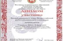 Призерами Республиканского этапа Всероссийской Робототехнической олимпиады стали Хабибрахманов Ильяс в состязании "Кегельринг", Валеев Илья (младшая группа) в состязании "Лабиринт: Туда и обратно"