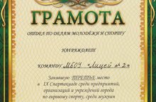 Награждается команда МБОУ "Лицей №2" занявшая 3 место по гиревому спорту, среди мужчин.