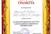 Сегодня прошел первый этап районных соревнований по техническому творчеству "Техностарт - 2016" по простейшему автомоделированию. Ученик 10 класса Максимов Альберт занял 1 первое место в классе ЭЛ-1. Ученик 6 класса Хайруллин Дамир занял 5 место в классе РМ-1.