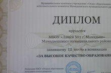 | Короткое название: | МБОУ "Лицей № 2 им. ак. К.А. Валиева г. Мамадыш" |