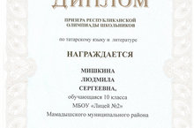 Диплом призера Мишкиной Л.С.