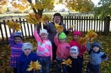 Тәрбияче апалар белән бергә алма уңышын җыябыз.