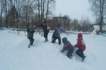 Катались на лыжах, играли в игру "Царь горы".
