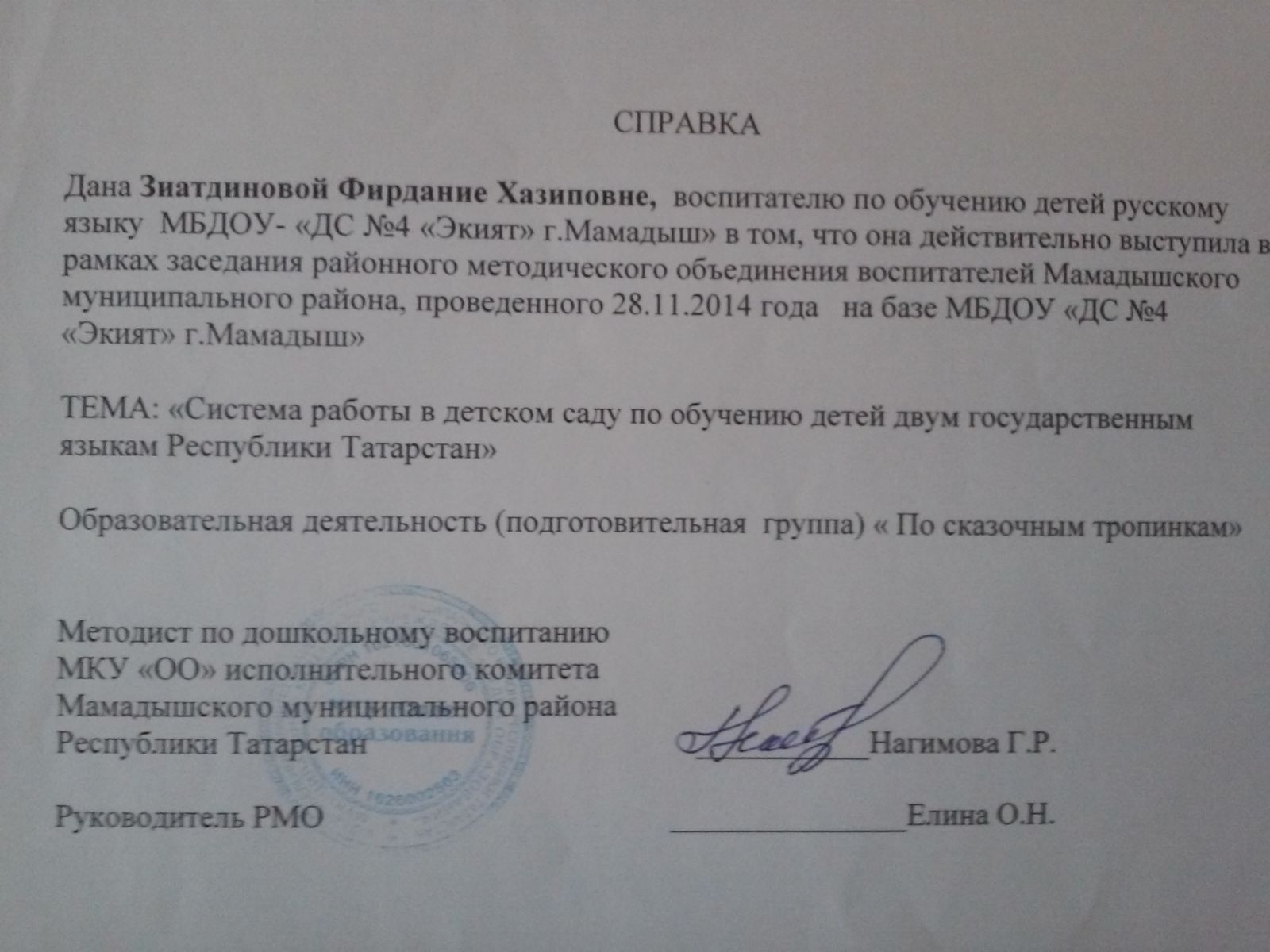 Муниципальное бюджетное дошкольное образовательное учреждение «Детский сад № 4 «Экият» города Мамадыш» Мамадышского муниципального района Республики Татарстан