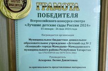 Грамота победителя Всероссийского конкурса-смотра "Лучшие детские сады России 2024" 16.09.2024