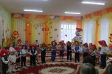 Праздник осени в детском саду – одно из самых ярких и красочных мероприятий. Осенние листья, овощи, грибы,– это потрясающие атрибуты. В старше-подготовительной группе прошел осенний утренник . Симпатичное Пугало -гость нашего праздника . Дети исполняли песни, танцы, стихи, играли в веселые игры. И конечно Осень принесла – на праздник угощенья — дары осени это осенние яблоки.
