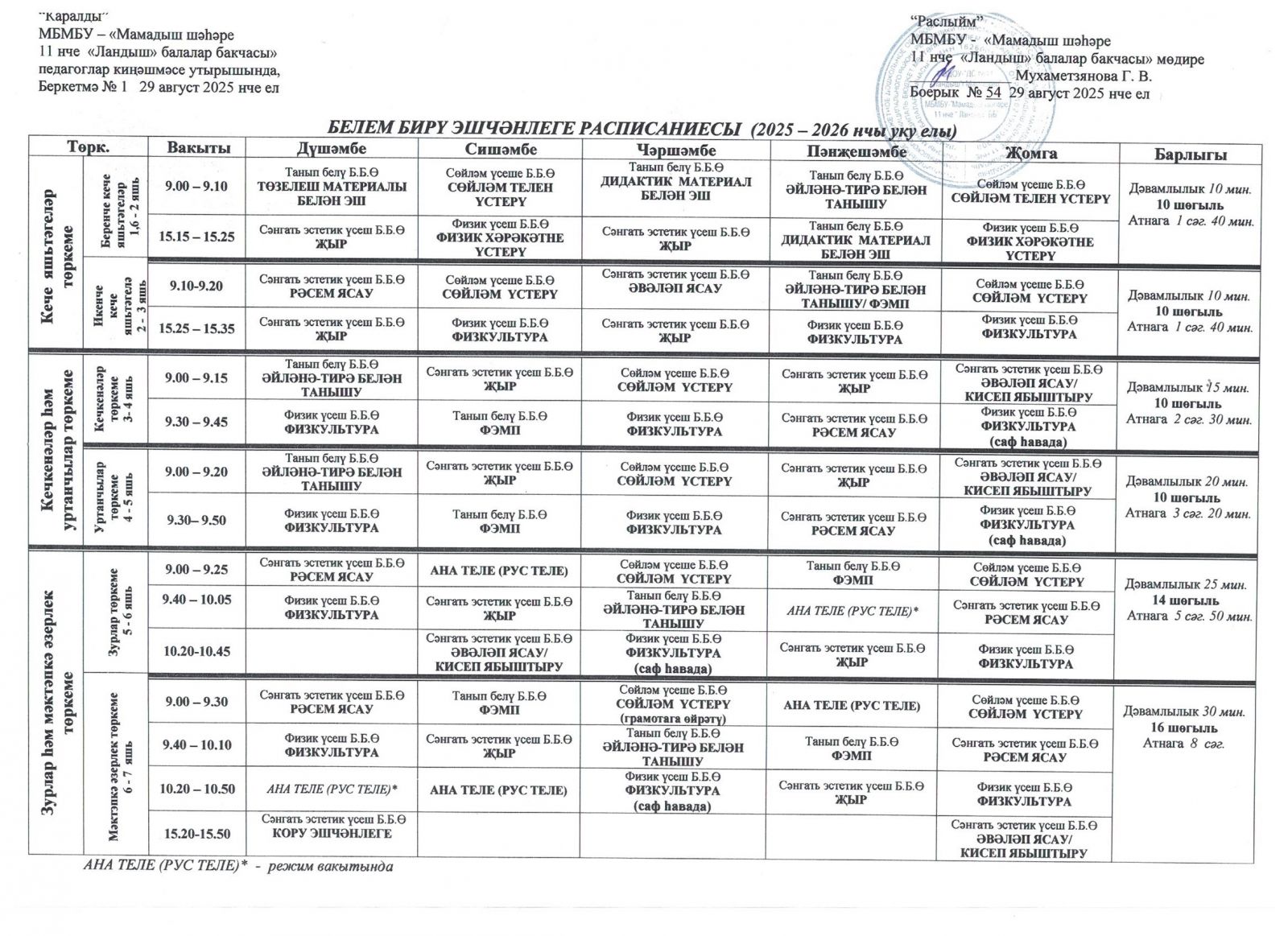 Язык образования: татарский, изучение двух Государственных языков Республики Татарстан (русский).