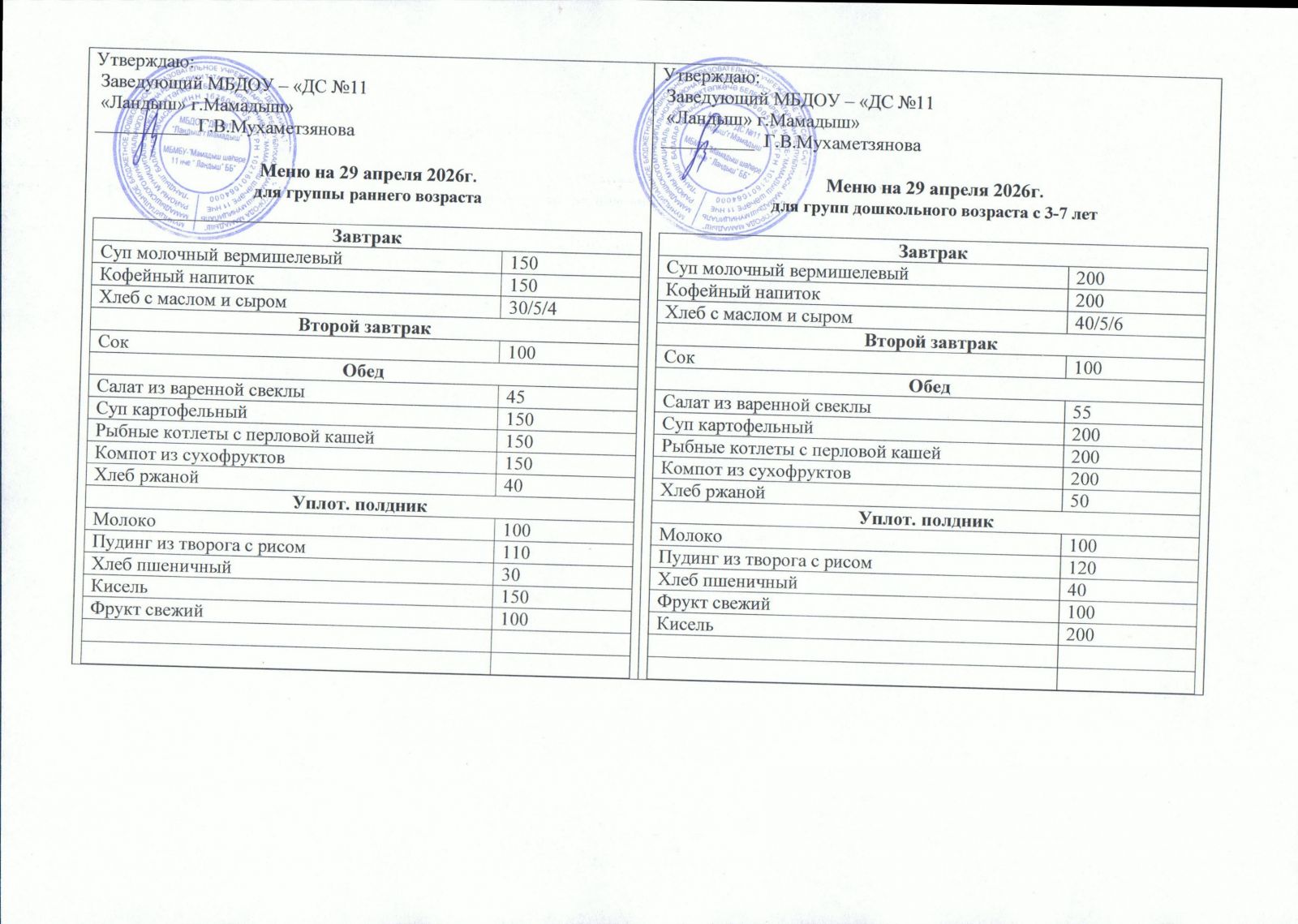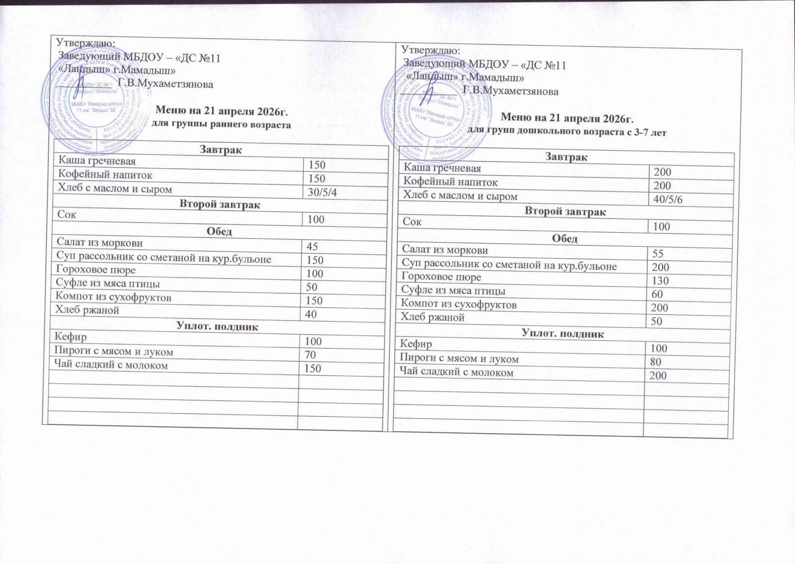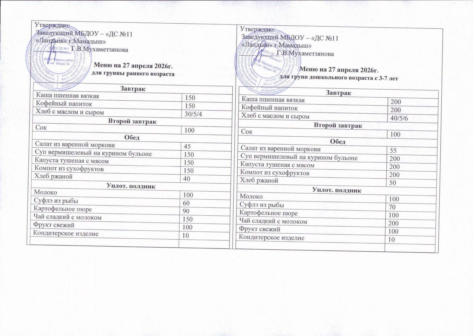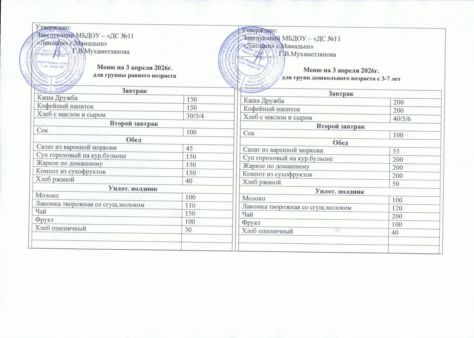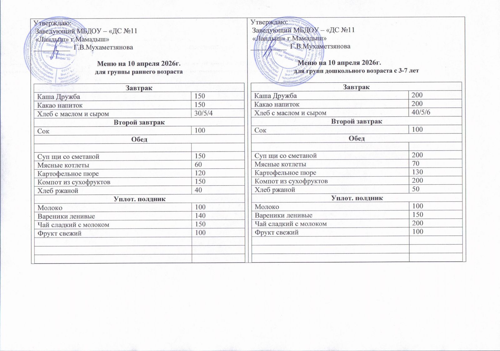 Примерное десятидневное меню для организации питания детей с 3 до 7 лет
