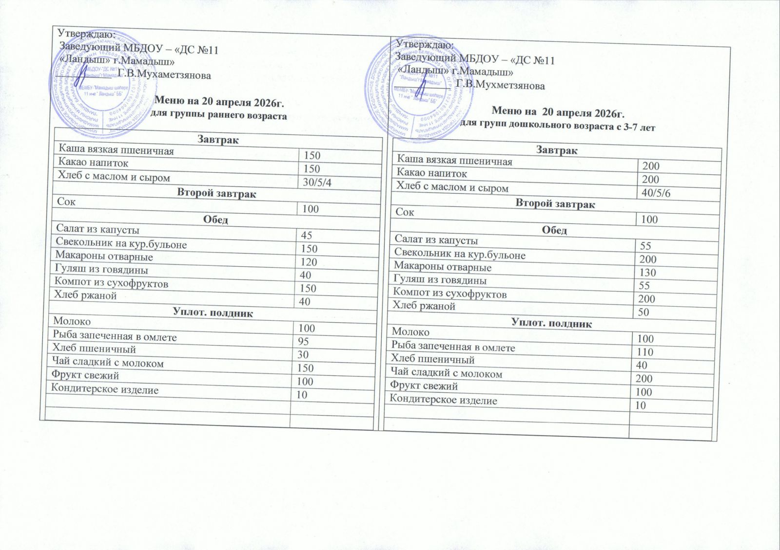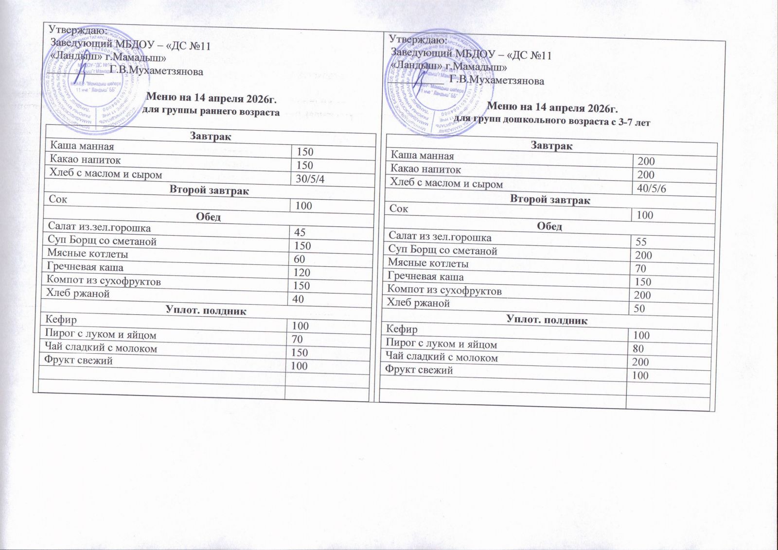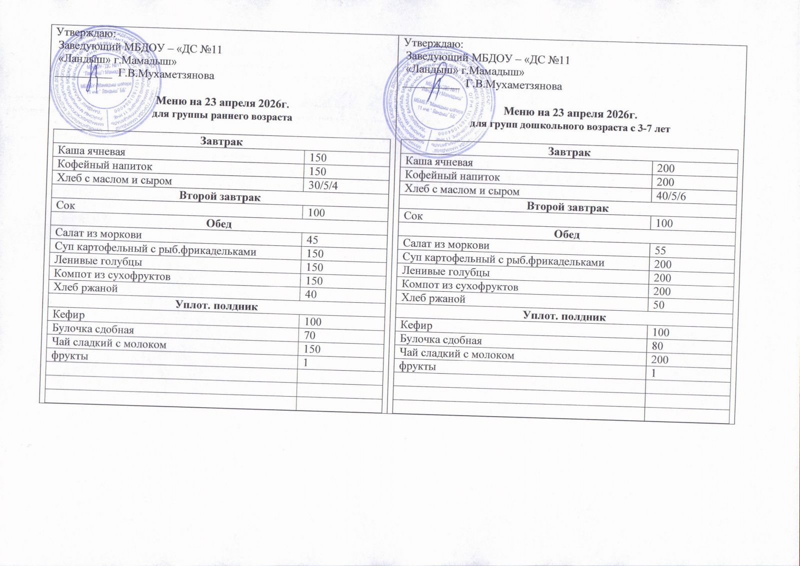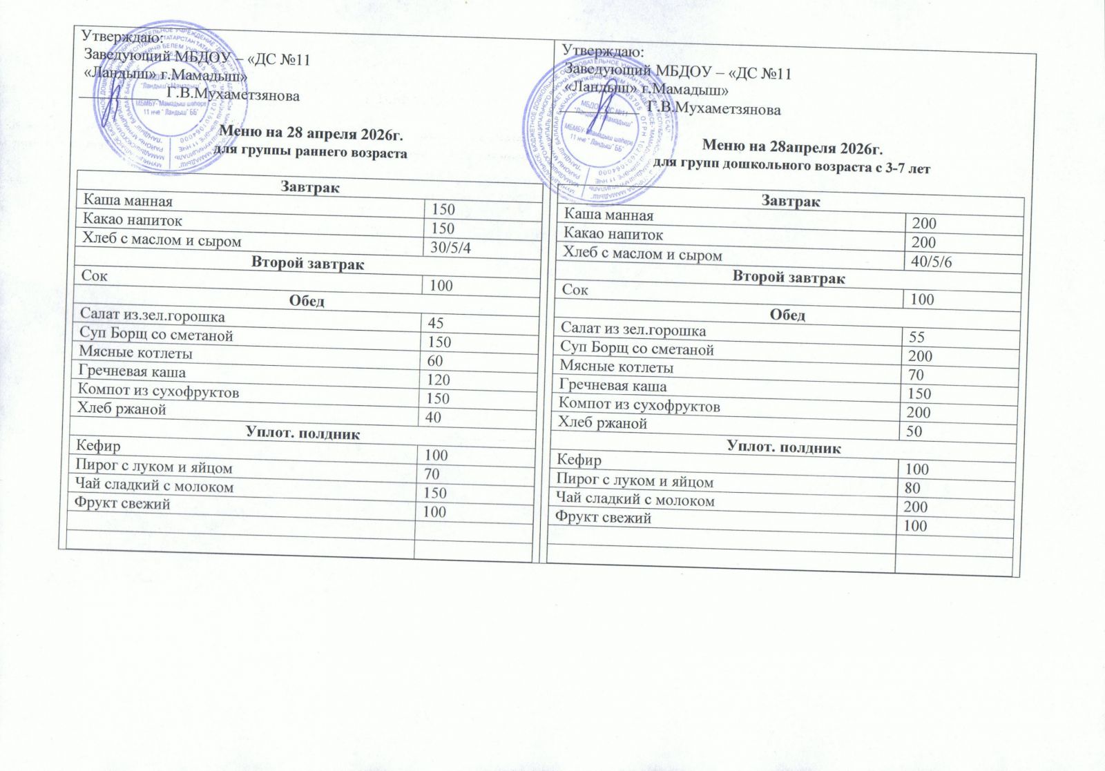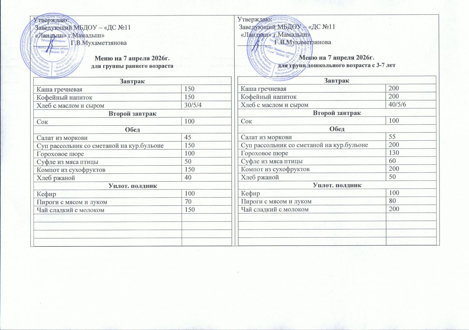Примерное десятидневное меню для организации питания детей с 3 до 7 лет