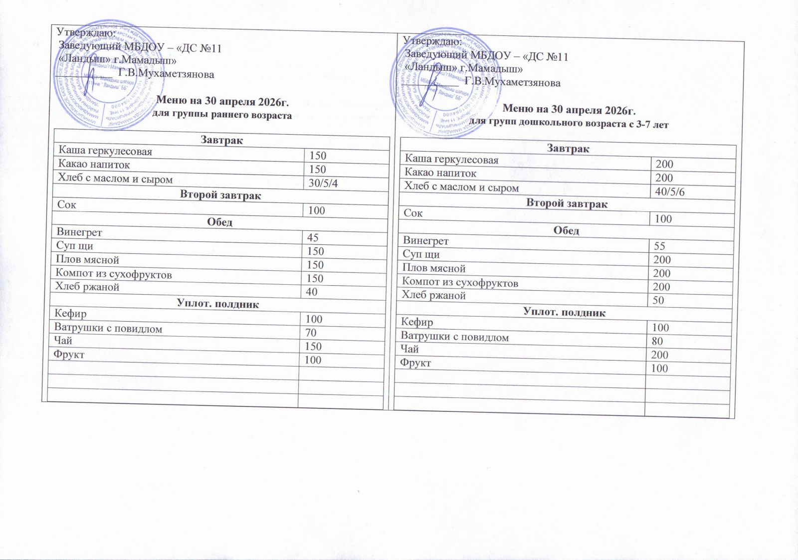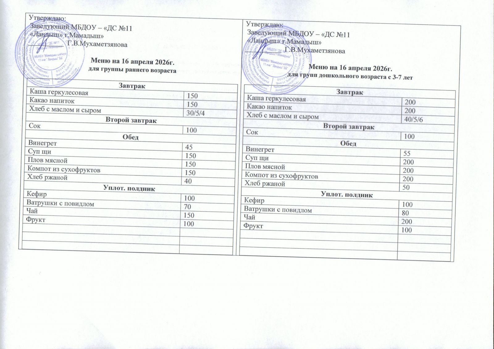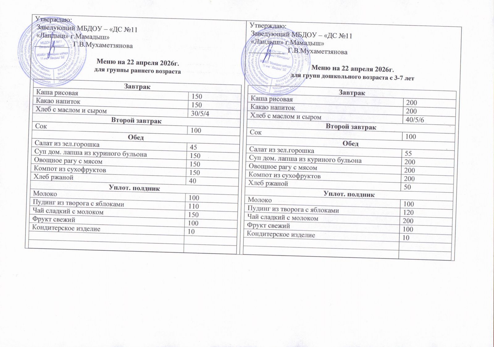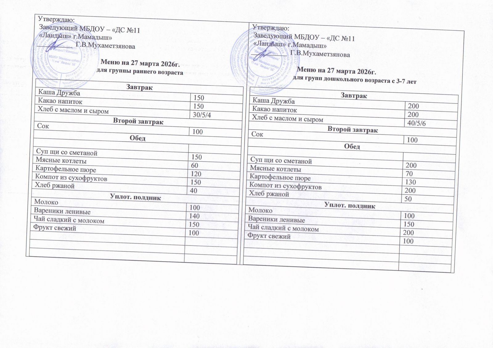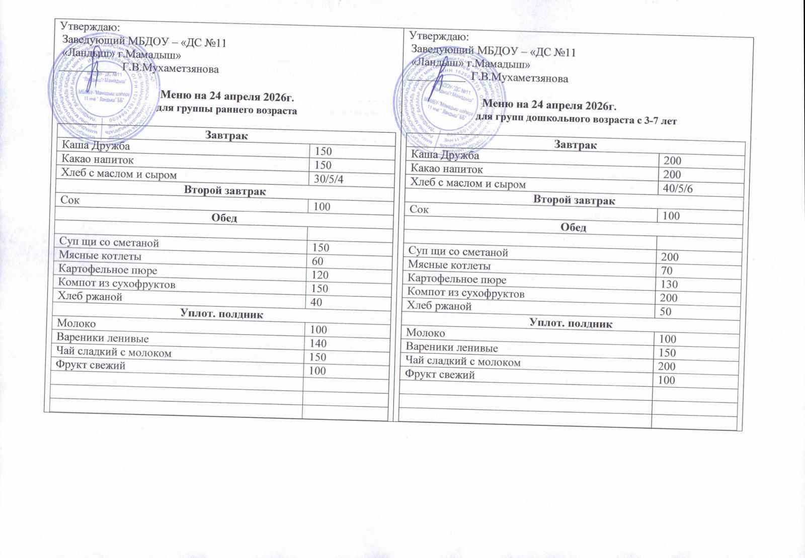 Примерное десятидневное меню для организации питания детей с 3 до 7 лет
