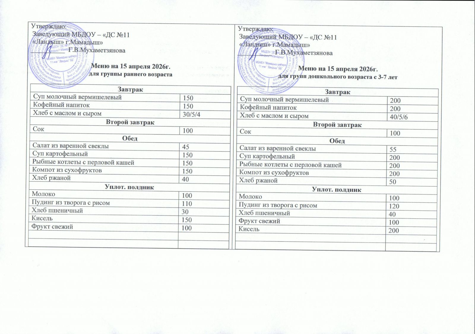 Примерное десятидневное меню для организации питания детей с 1,5 до 3 лет
