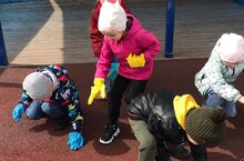 Дети убирали свой игровой участок от мусора / Балалар участокны чүпләрдән чистарттылар. 17.04.2024