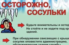 Осторожно! Внимание! Возможно падение сосулек и схода снега./Түбәдән бозлар һәм кар өемнәре тошәргә мөмкин.Игътибарлы булыгыз!, Сак булыгыз!" 13.03.2024