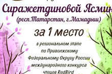 Диплом первой степени Сиражетдинова Ясмина в региональном этапе по Приволжскому округу России международного конкурса чтецов Red Bird на английском языке в младшей группе Сиражетдинова Ясминә инглиз телендә шигырь сөйләү буенча 1 нче урын яулады һәм диплом белән буләкләнде.Алга таба уңышлар телибез. 28.03.2024