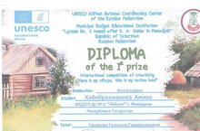 Диплом 1 степени и 2 степени получили наши воспитанники во всемирной под патронажем ЮНЕСКО в конкурсе "Вот моя деревня вот мой дом родной" 25.12.2023