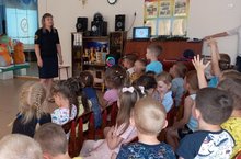 У нас в гостях сотрудники ГИБДД Идиятова Диляра провела викторину "Азбука движения" и посмотрели вместе с детьми мультфильм "Дозорные дорог" 25.07.2023
