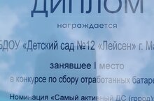 Диплом 1 место в конкурсе по сбору отработанных батареек . Номинация "Самый активный ДС" 01.06.2023