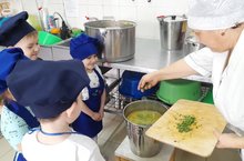 Дети старшей группы вырастили урожай зеленого лука на подоконнике собрали урожай и поделились с нашим поварами . Они всех угостили первыми витаминами . 20.03.2023