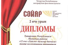 Балалар һәм яшьүсмерләрнең Республика театр фестивале үткәргән Сәйяр конкурсында бакчабыз 2 нче урын дипломы белән бүләкләндек. 26.11.2021