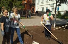 Коллектив педагогов и сотрудников "Нухрата" облагораживал главную улицу
