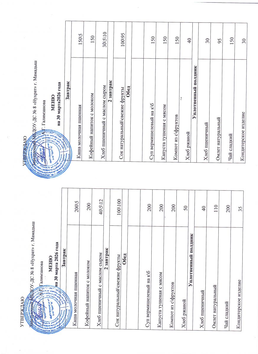 Меню 30.03.2026