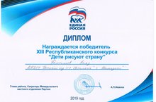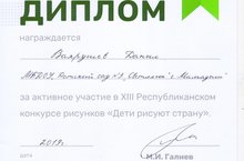 Воспитанник нашего детского сада Галимов Раяз занял первое место в XIII республиканском конкурсе "Дети рисуют страну". Поздравляем!!!