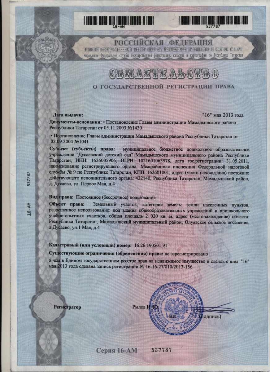 | Адрес: | 422140, Республика Татарстан, Мамадышский район, д. Дусаево, ул. 1 Мая, д. 4 |