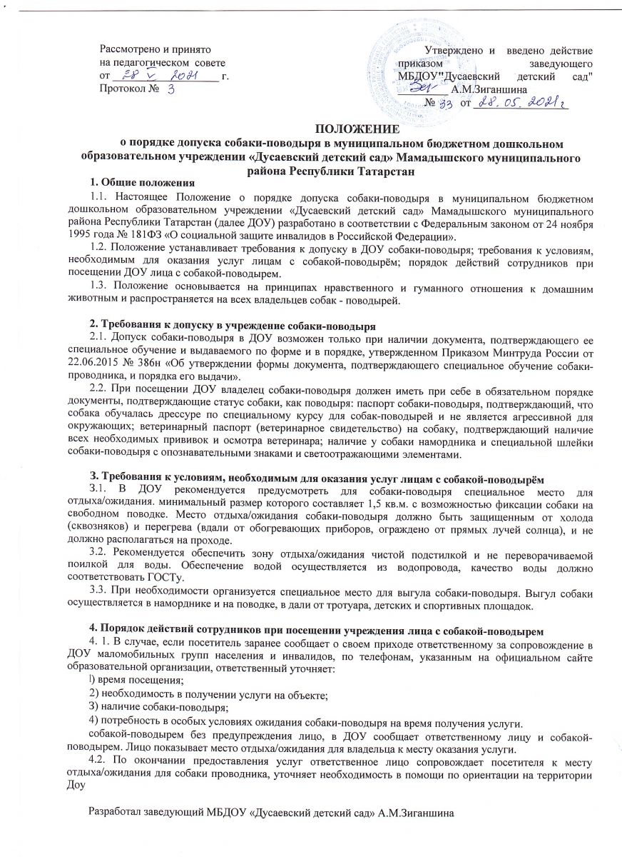 Положение о порядке допуска собаки-поводыря