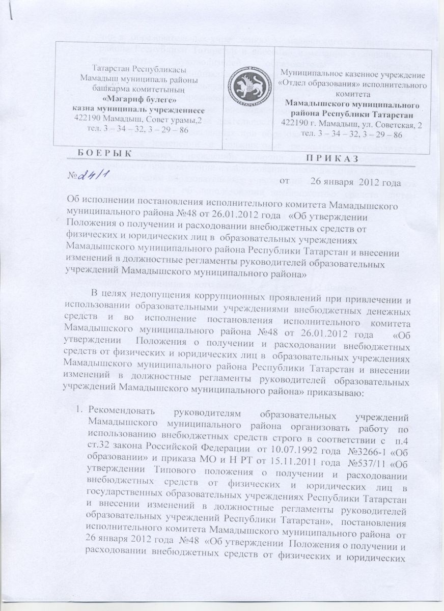 Об использовании постановления исполнительного комитета Мамадышского муниципального района