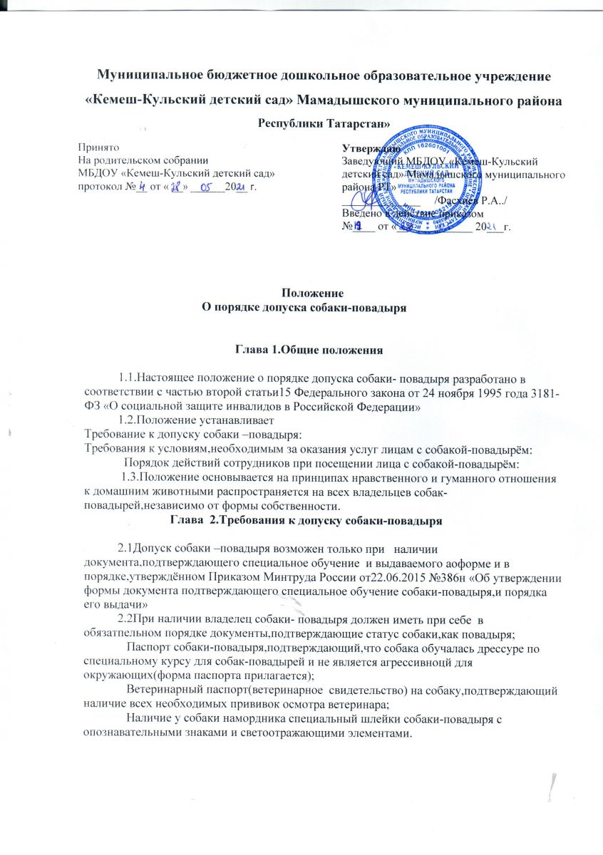 Положение о порядке допуска собаки -поводыря