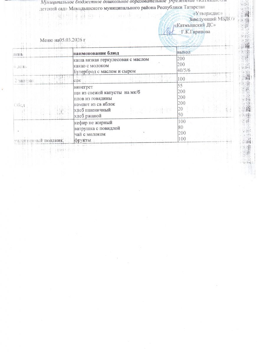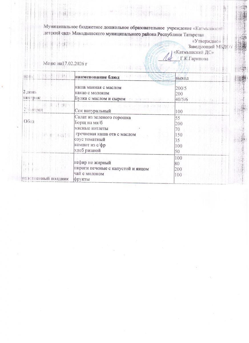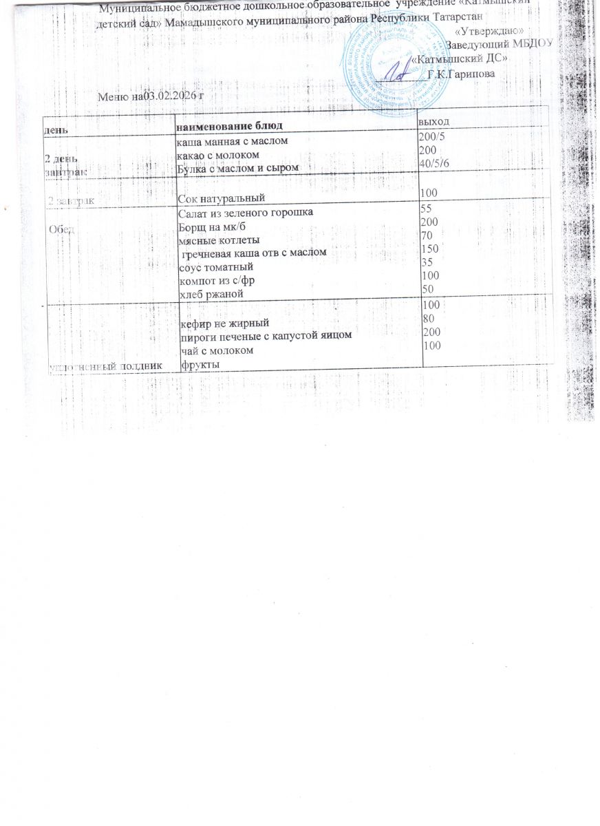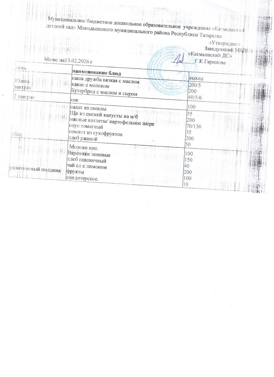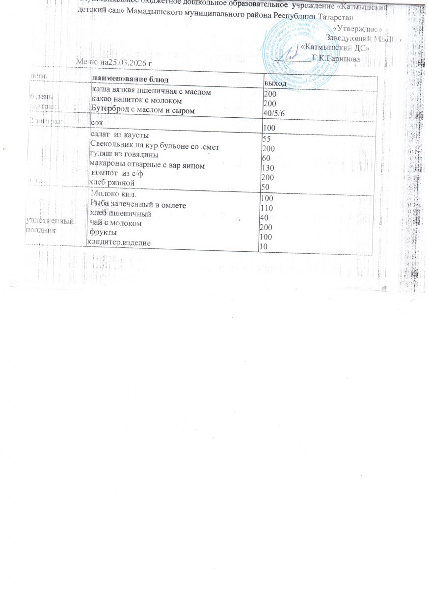 Муниципальное бюджетное дошкольное образовательное учреждение «Катмышский детский сад» Мамадышского муниципального района РТ