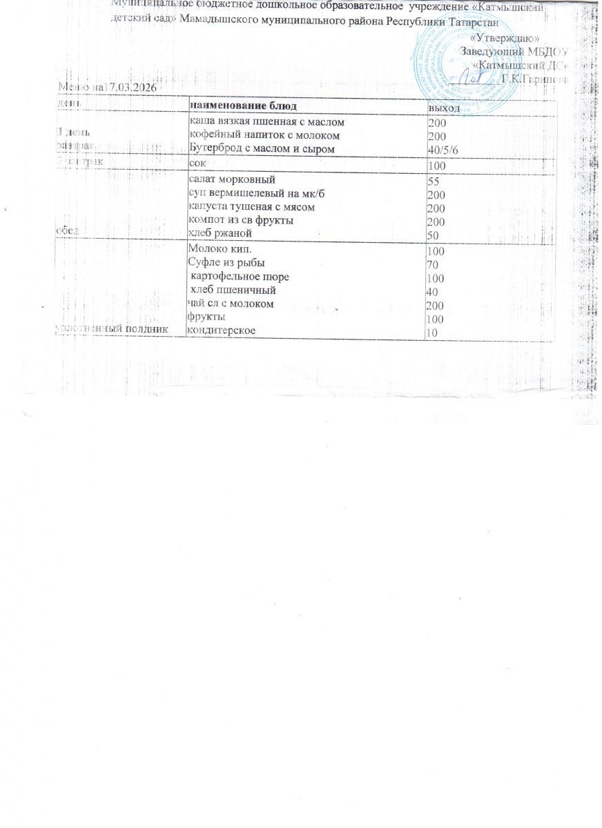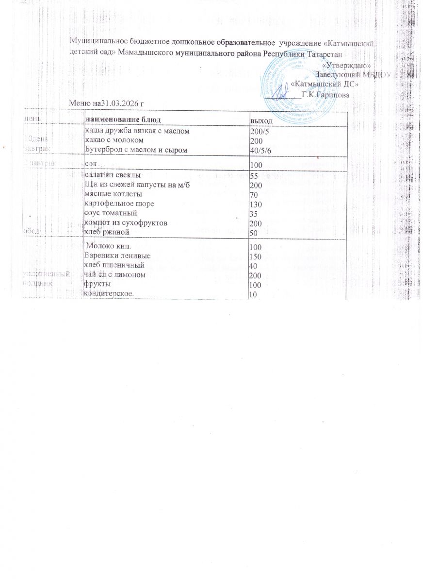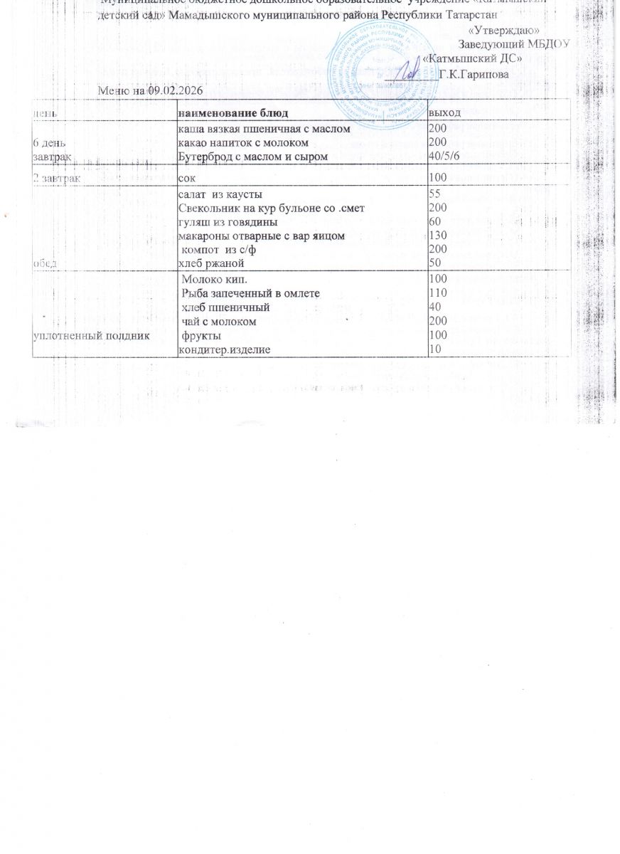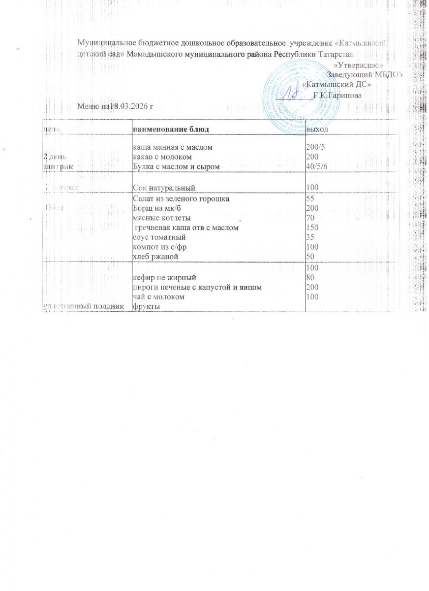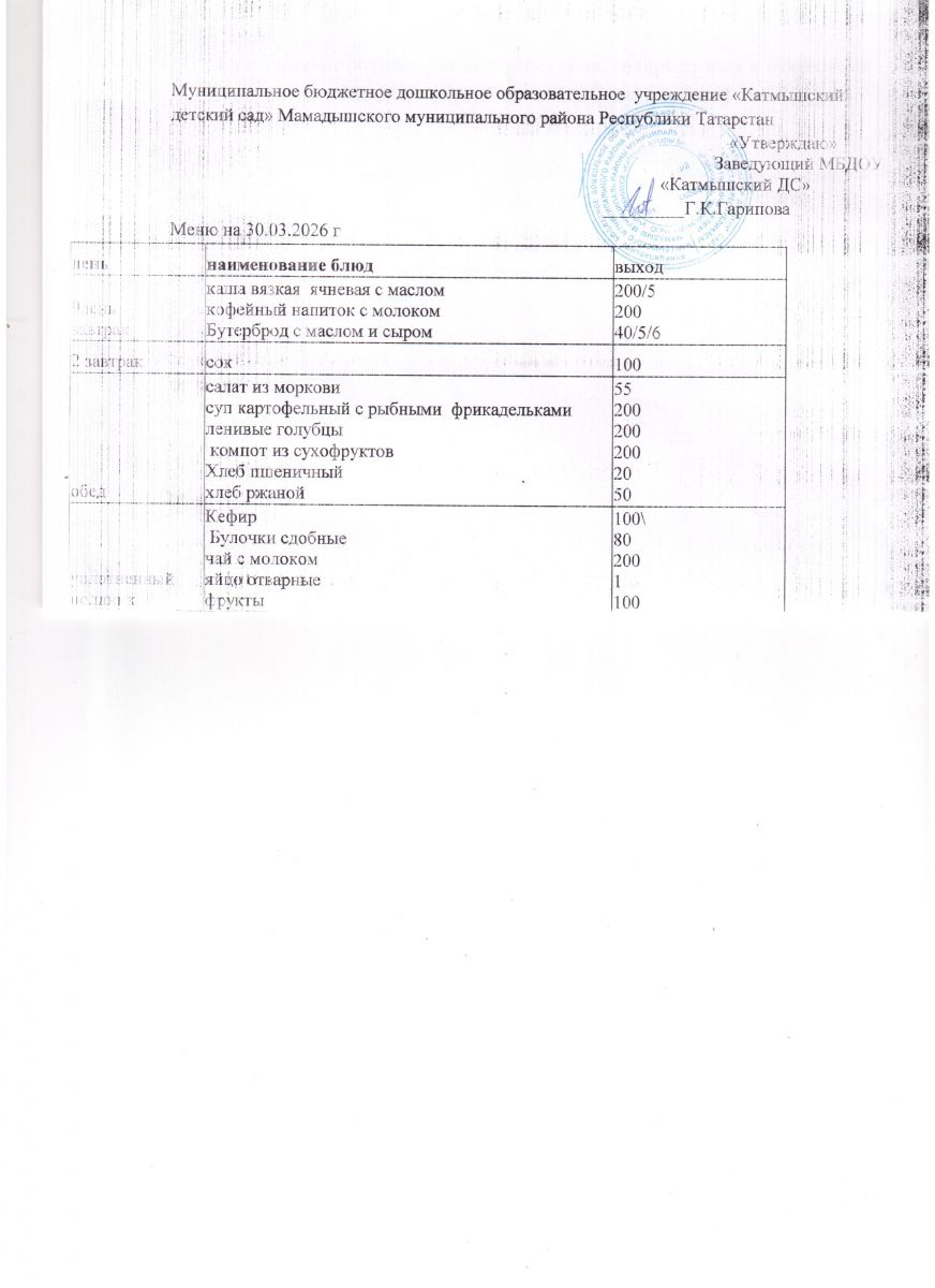 Муниципальное бюджетное дошкольное образовательное учреждение «Катмышский детский сад» Мамадышского муниципального района РТ