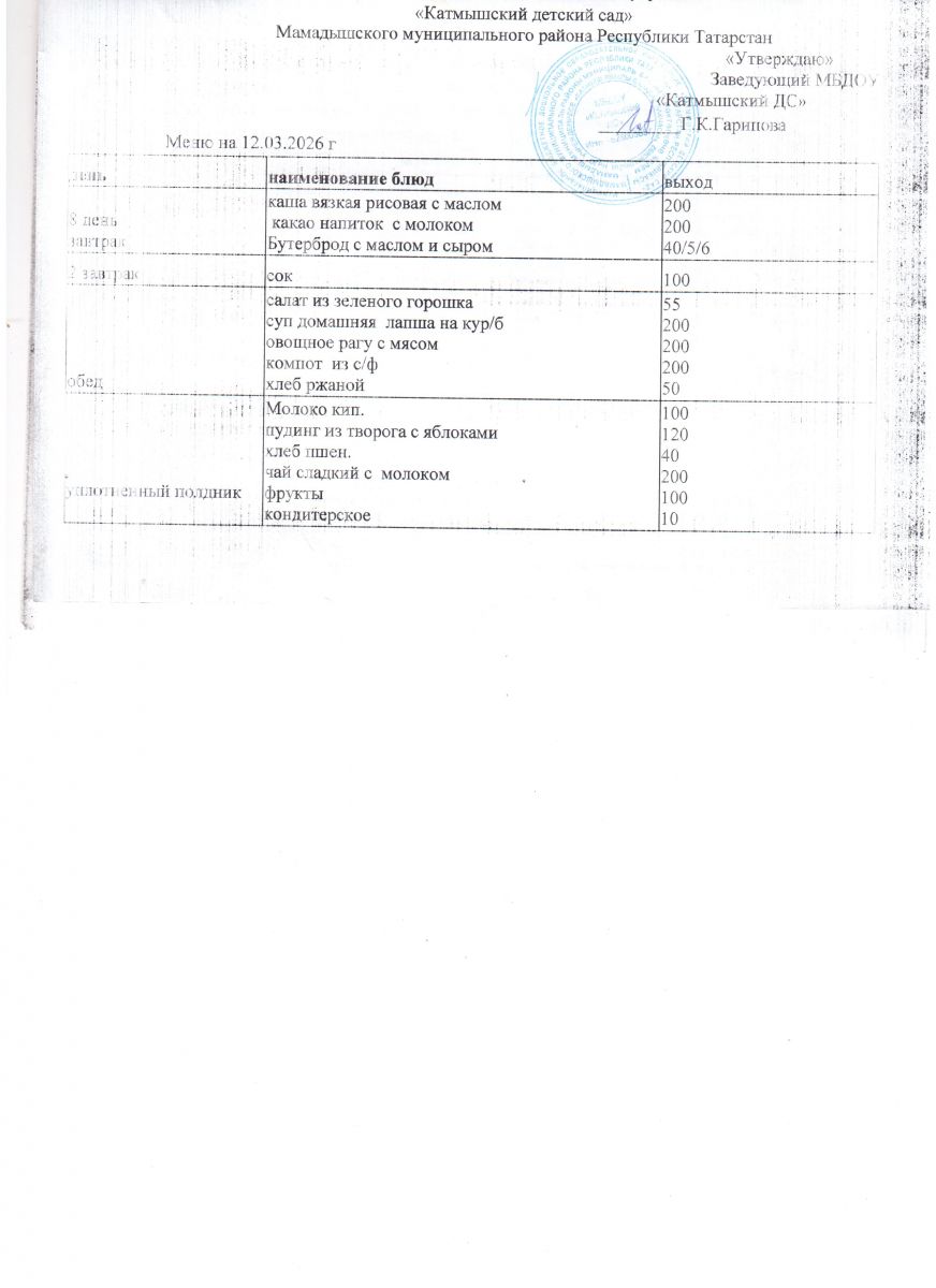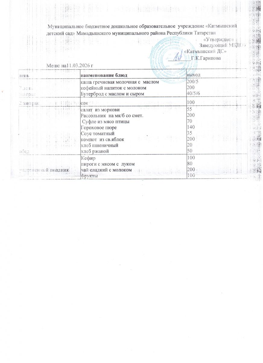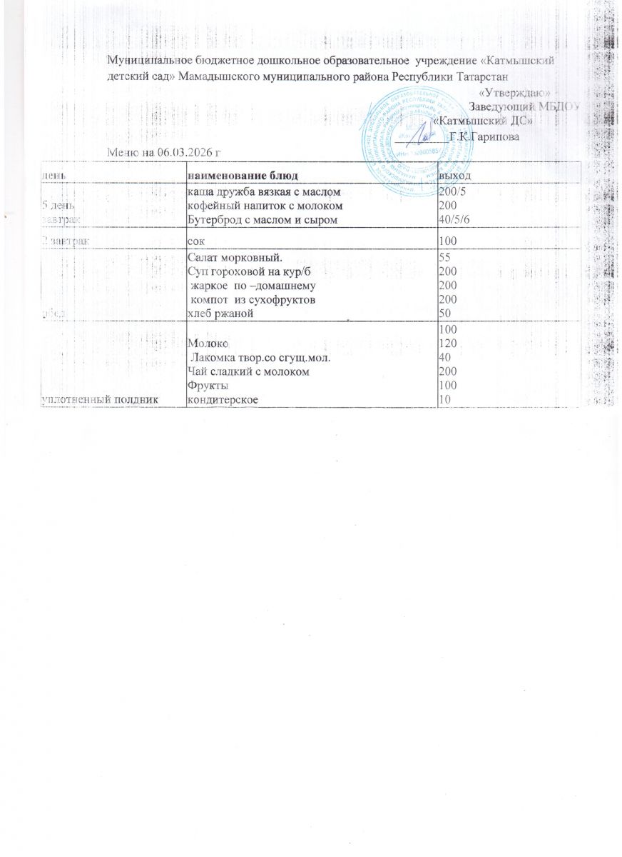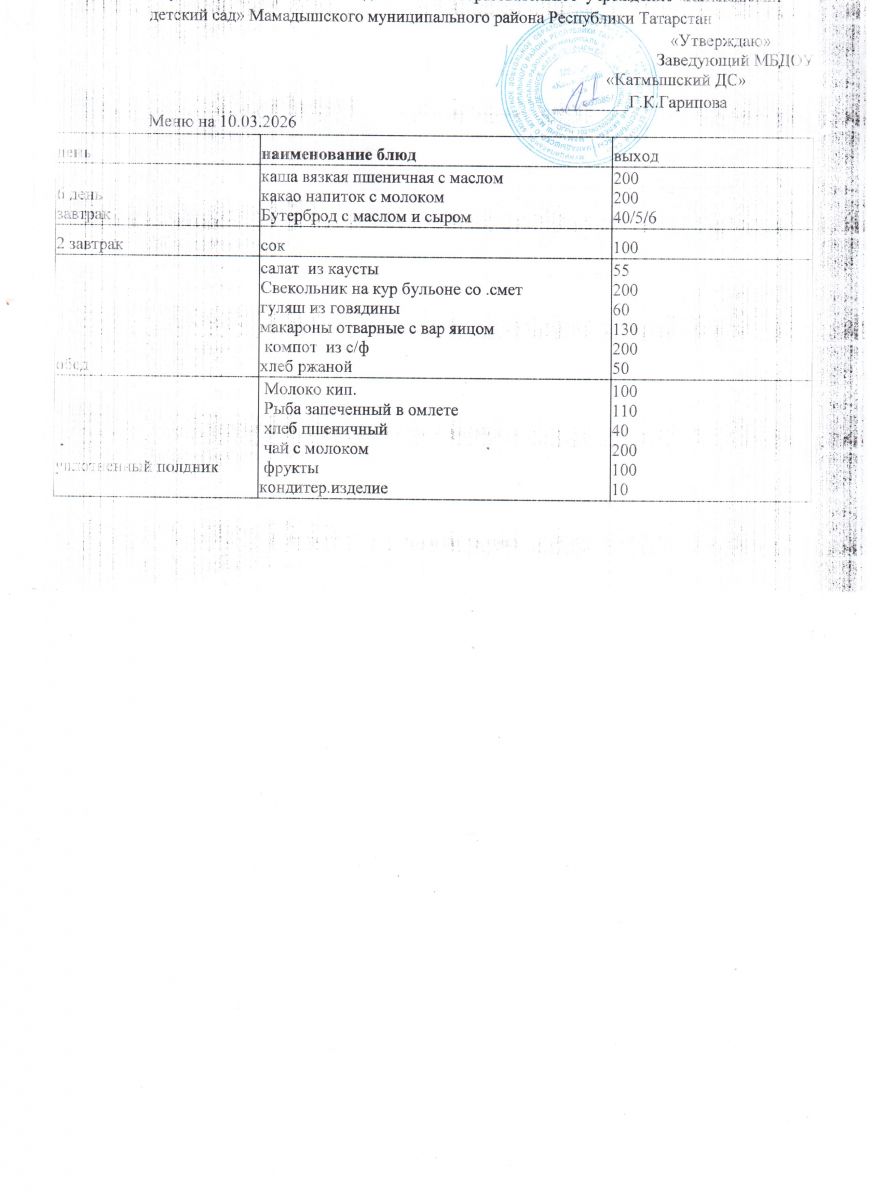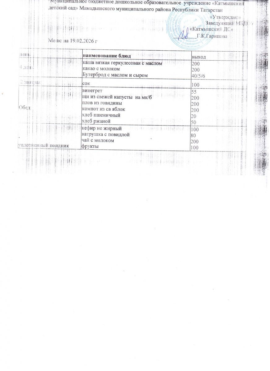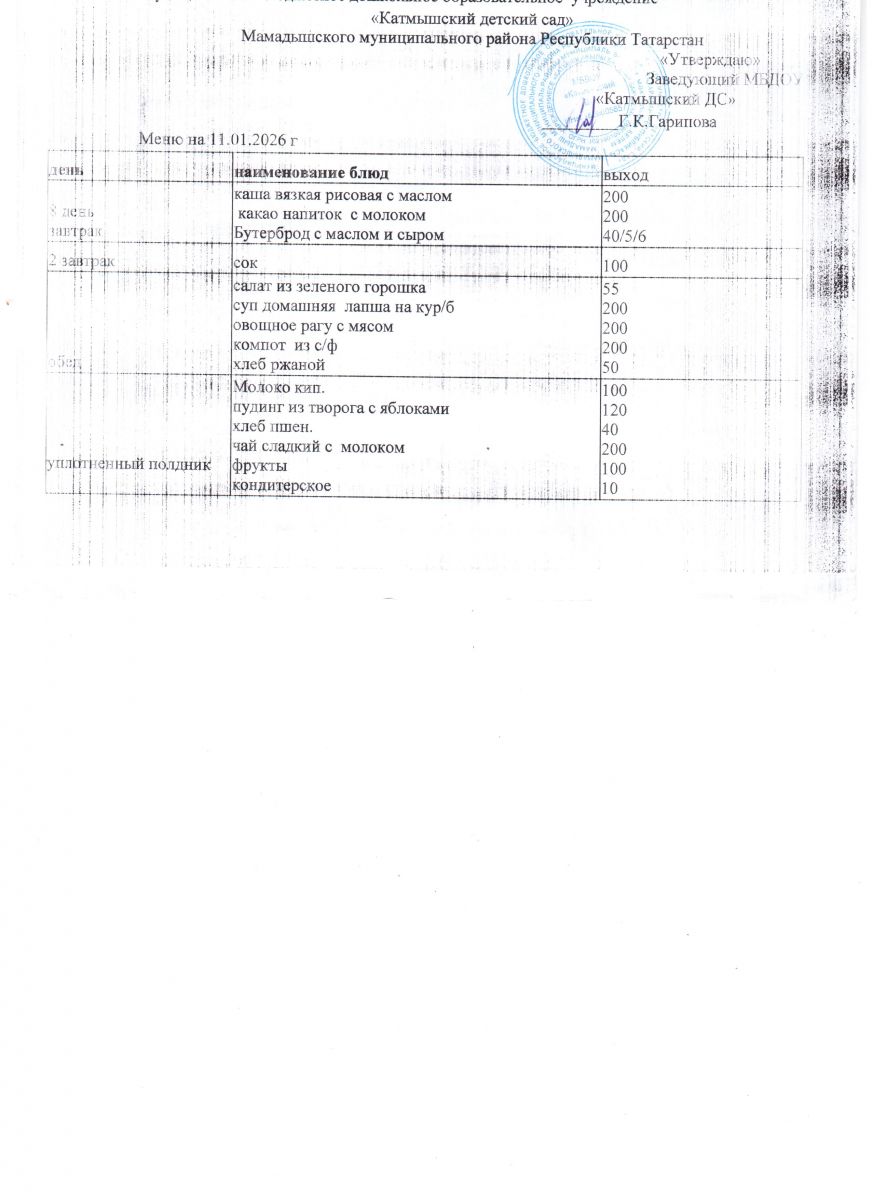 Муниципальное бюджетное дошкольное образовательное учреждение «Катмышский детский сад» Мамадышского муниципального района РТ