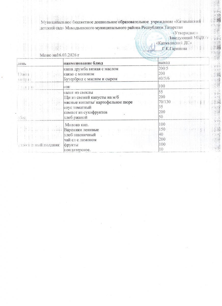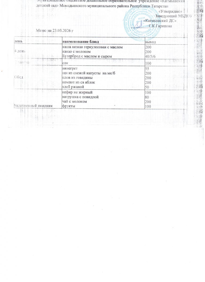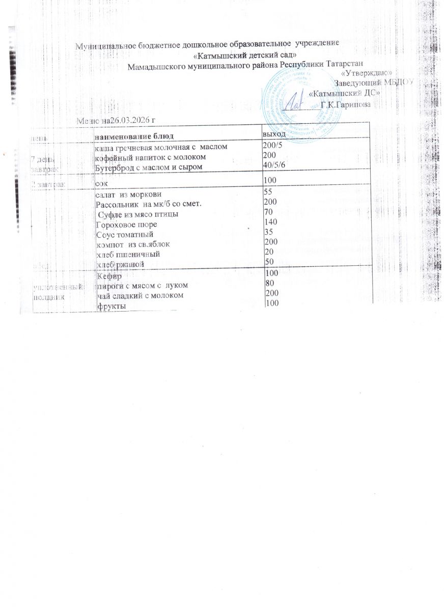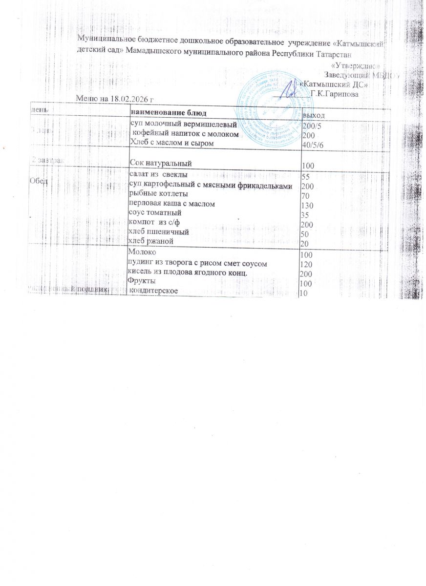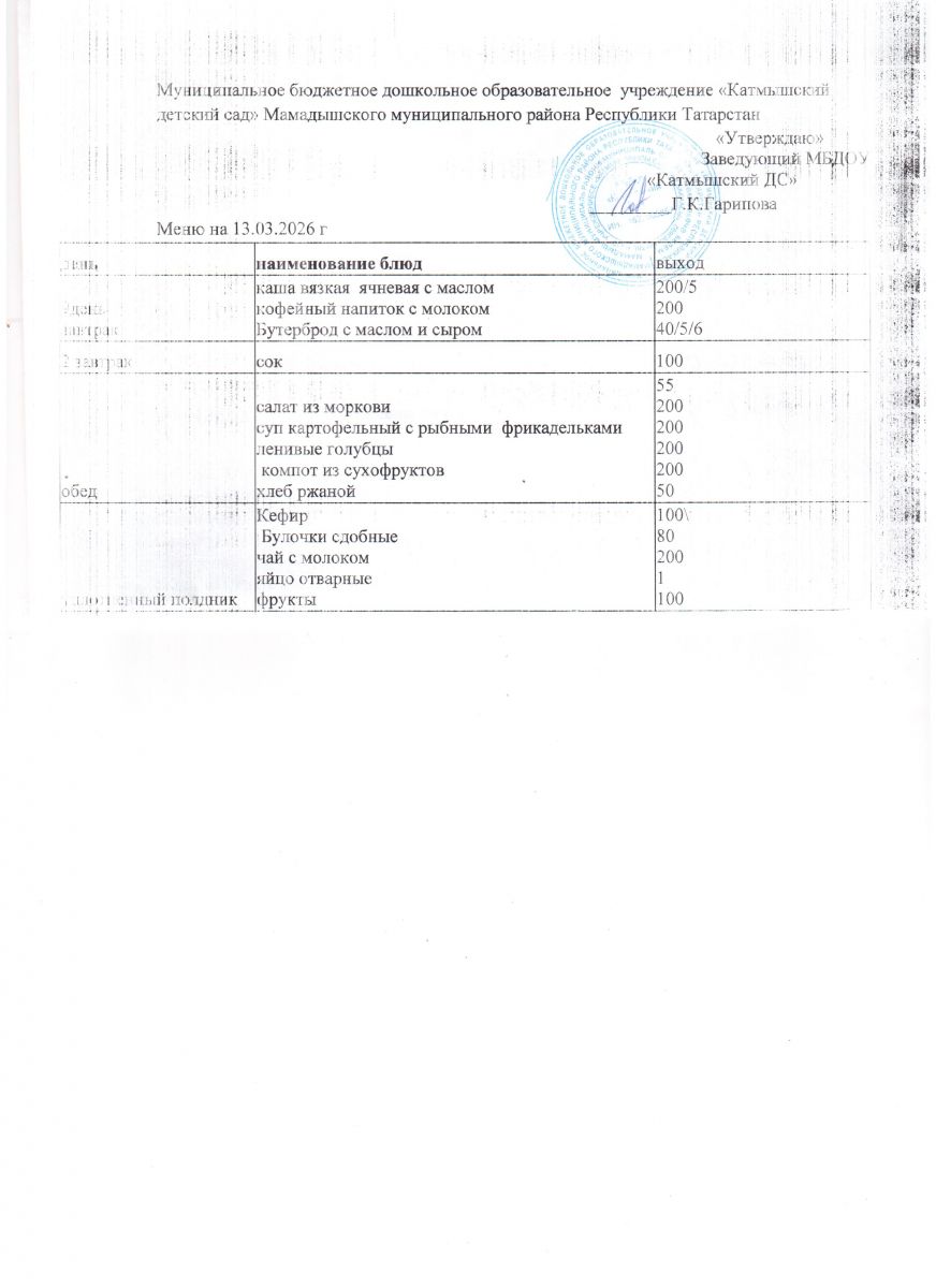 Муниципальное бюджетное дошкольное образовательное учреждение «Катмышский детский сад» Мамадышского муниципального района РТ